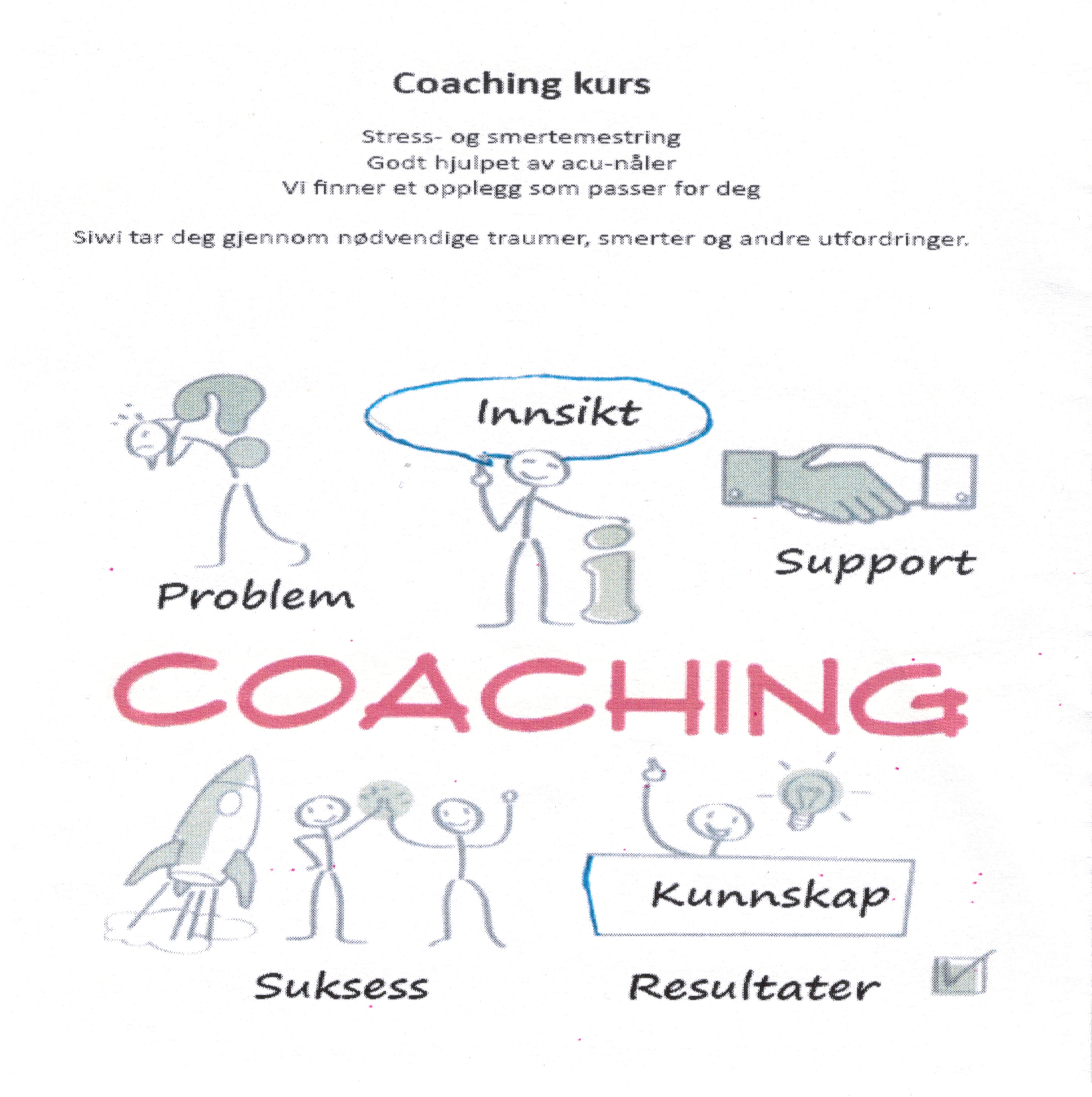 Vi skreddersyr et opplegg som passer for deg og avtaler tider, pris og hvilke type coaching/behandling som er hensiktsmessig.
